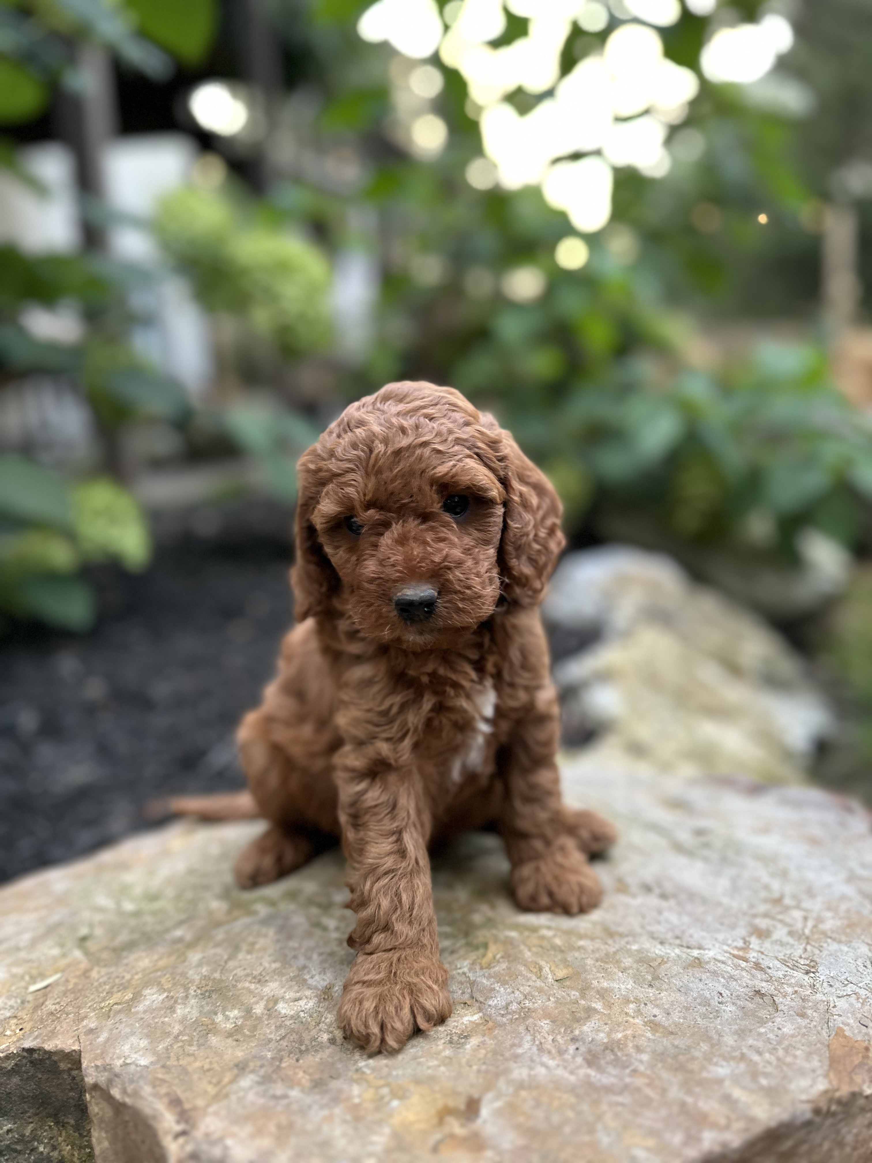 Willow, Mini Goldendoodle, is the mother and is part of our family & raised in our home! She is so well loved by our two toddlers. She has such a calm, gentle personality but also loves to play and have fun. She loves to go on hikes & walks with us! She weighs 29 lbs.