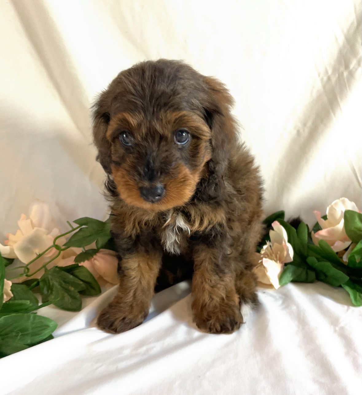 Meet our litter of F1b Mini Aussiedoodle puppies! They are raised in our home. They are played with frequently and and loved well. Our puppies are well socialized and acclimated to the sounds and experiences of our home so that they will make the best pet for you! We also take them outside to play regularly. We anticipate that the puppies will be 15-20 lbs at maturity.