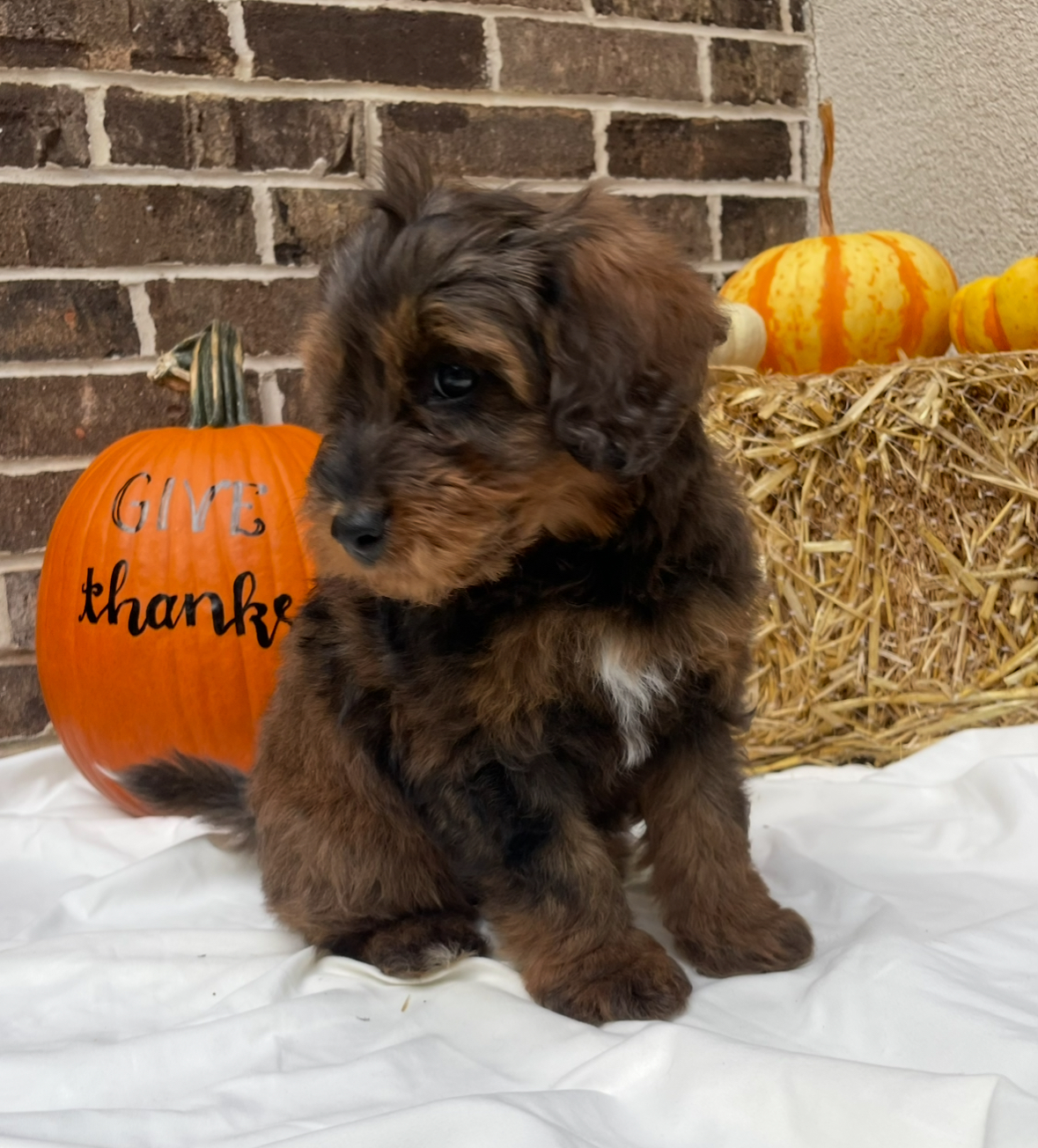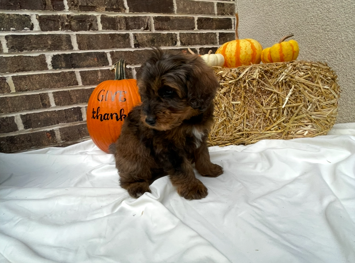 Mini Aussiedoodles are allergy friendly, intelligent, and loyal. They are known for being fun loving, social, and wonderful with children. Carter would make a great match for a family looking for a bright, joyful, and people-oriented companion.