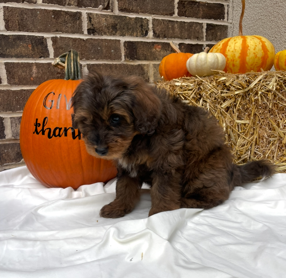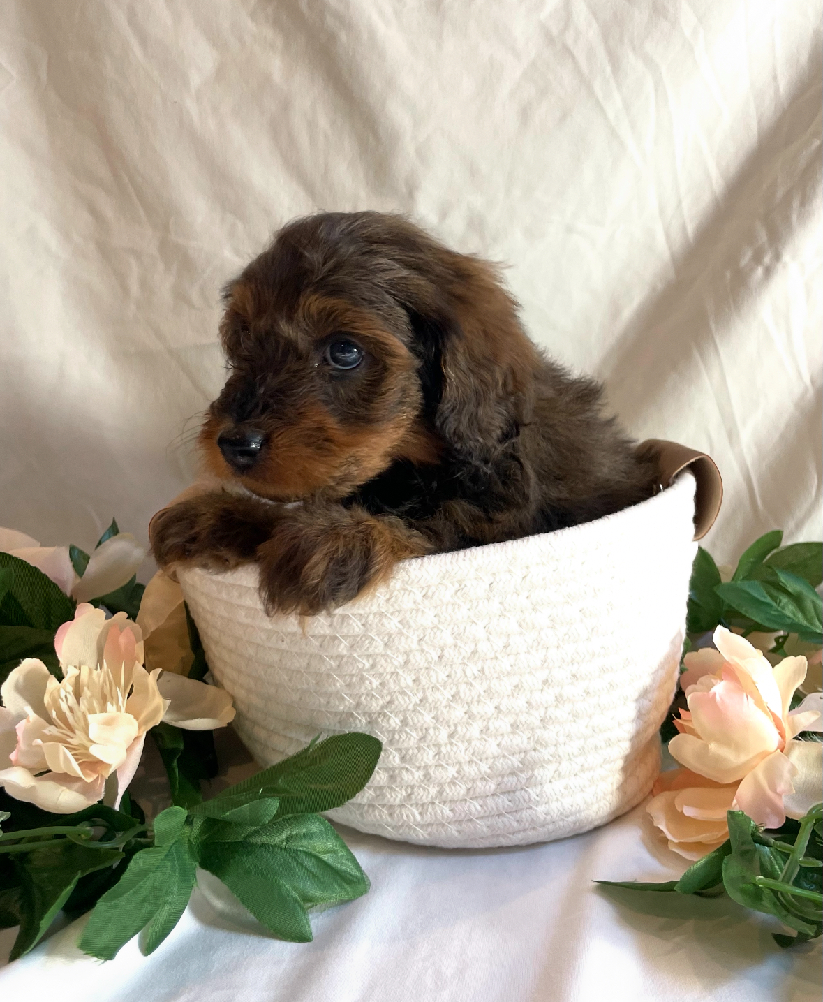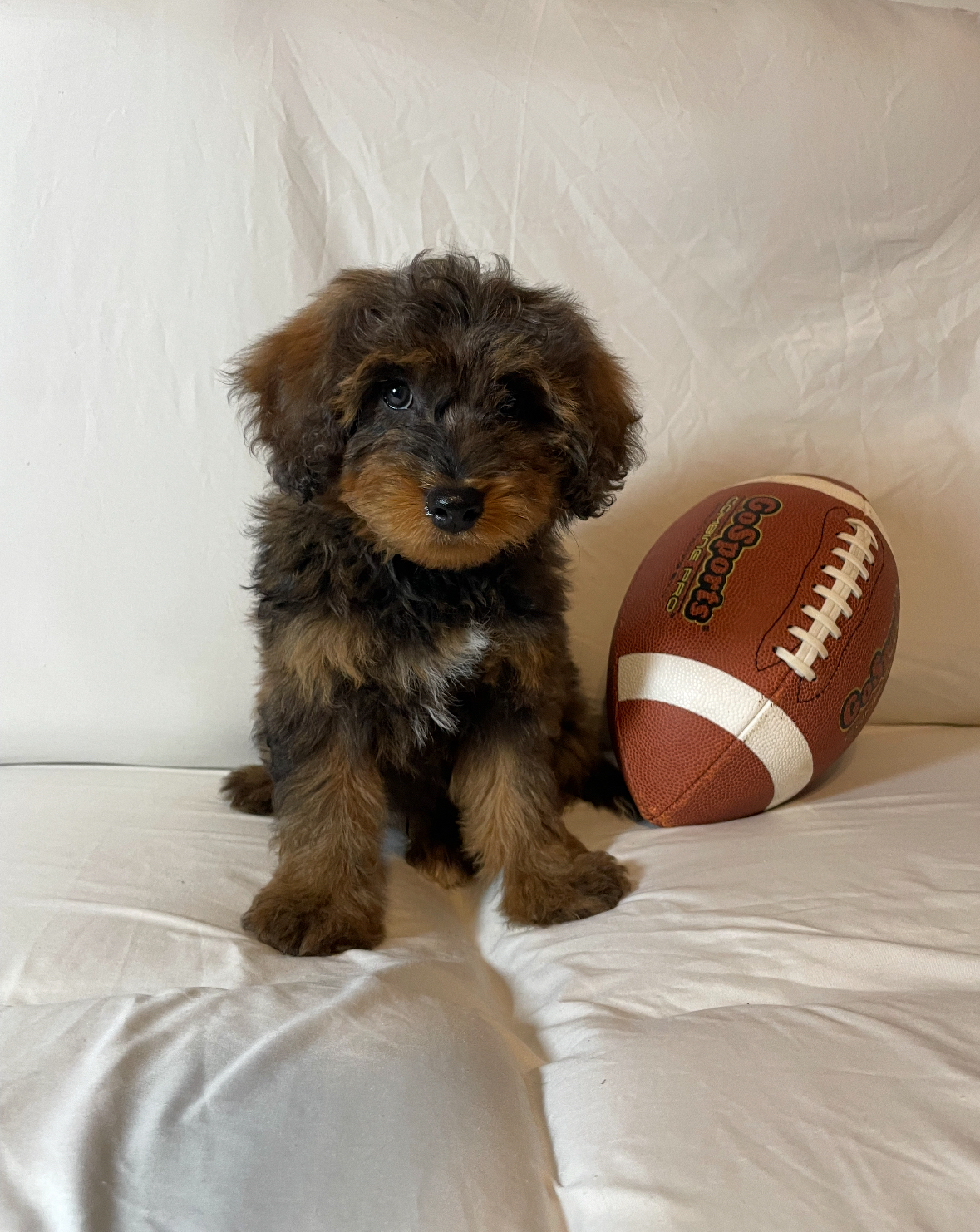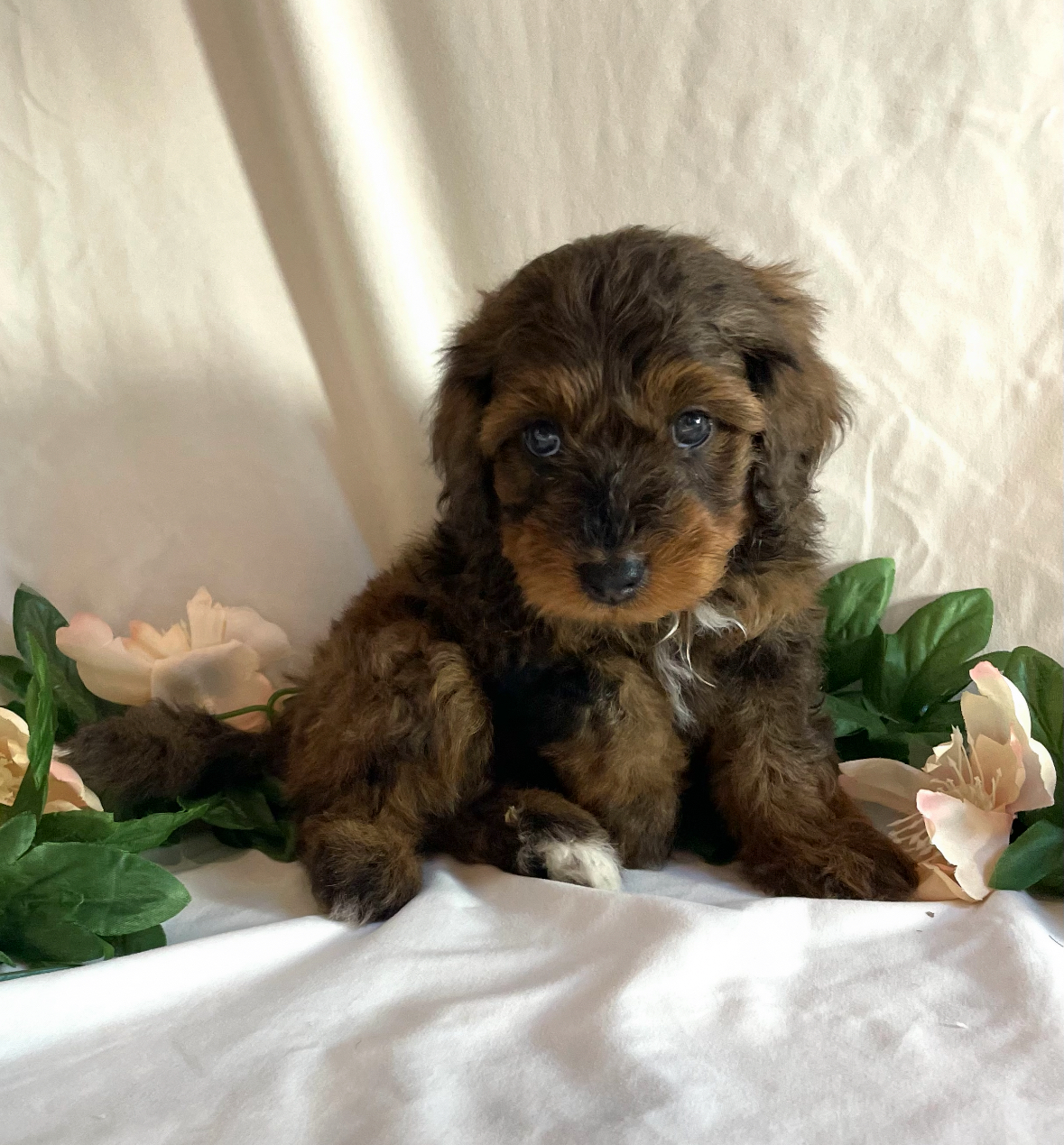 Meet Carter, an F1b Mini Aussiedoodle with a sweet, playful, and affectionate nature. Carter has been given lots of love, early socialization, and gentle daily experiences that help puppies grow into confident and well-adjusted companions. Outdoor playtime, exploration, and positive interactions are part of his routine, helping him build curiosity and comfort with new environments.