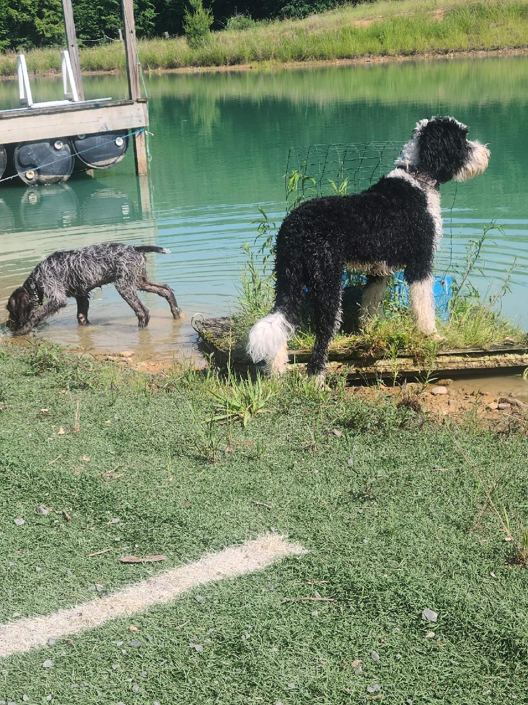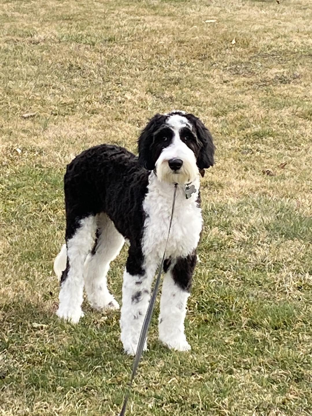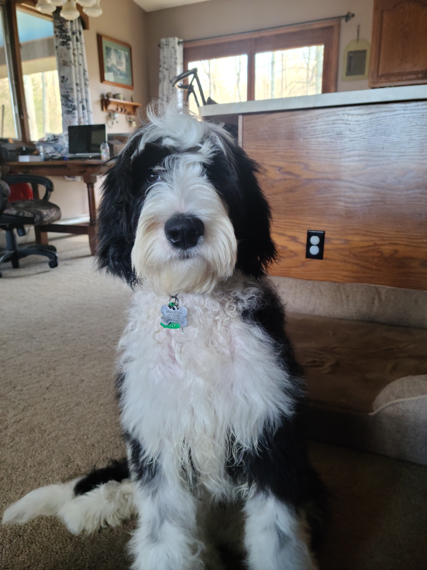 Brewster, father, is a 70 lb. Sheepadoodle. He is very friendly and gentle.