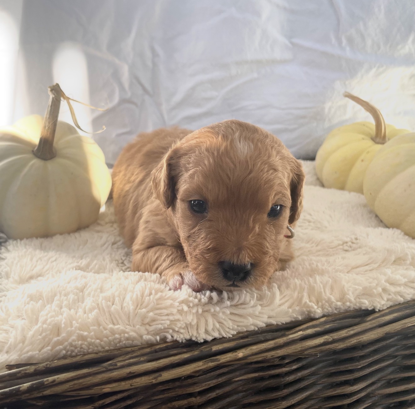 Meet Dart, a charming caramel Munchkin Bernedoodle boy with just a tiny kiss of white on his head - a subtle mark that perfectly suits his gentle, mellow spirit. At just over two weeks old, Dart is already showing a calm and thoughtful nature. He’s the kind of puppy who quietly observes before joining in, content to soak up affection and stay close to those he trusts. His easygoing personality and soft expression make him an ideal match for a family looking for a sweet, loyal companion.