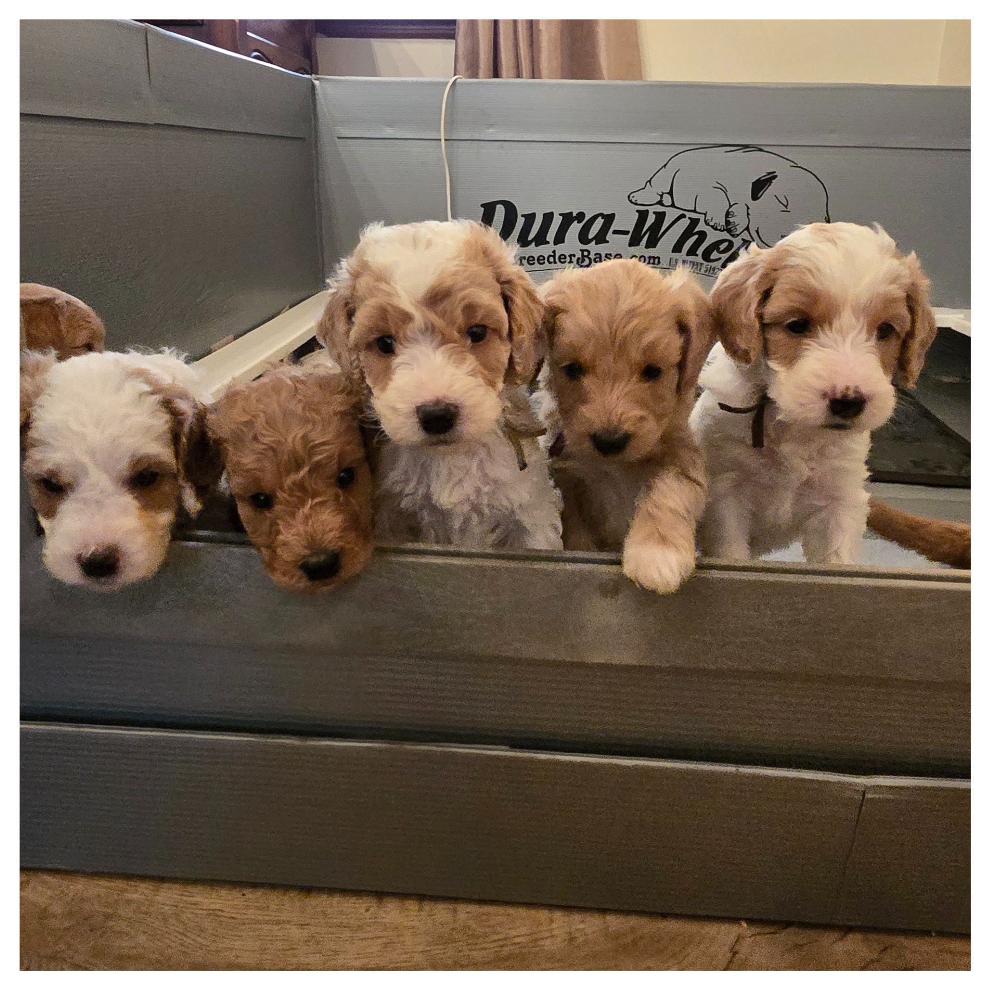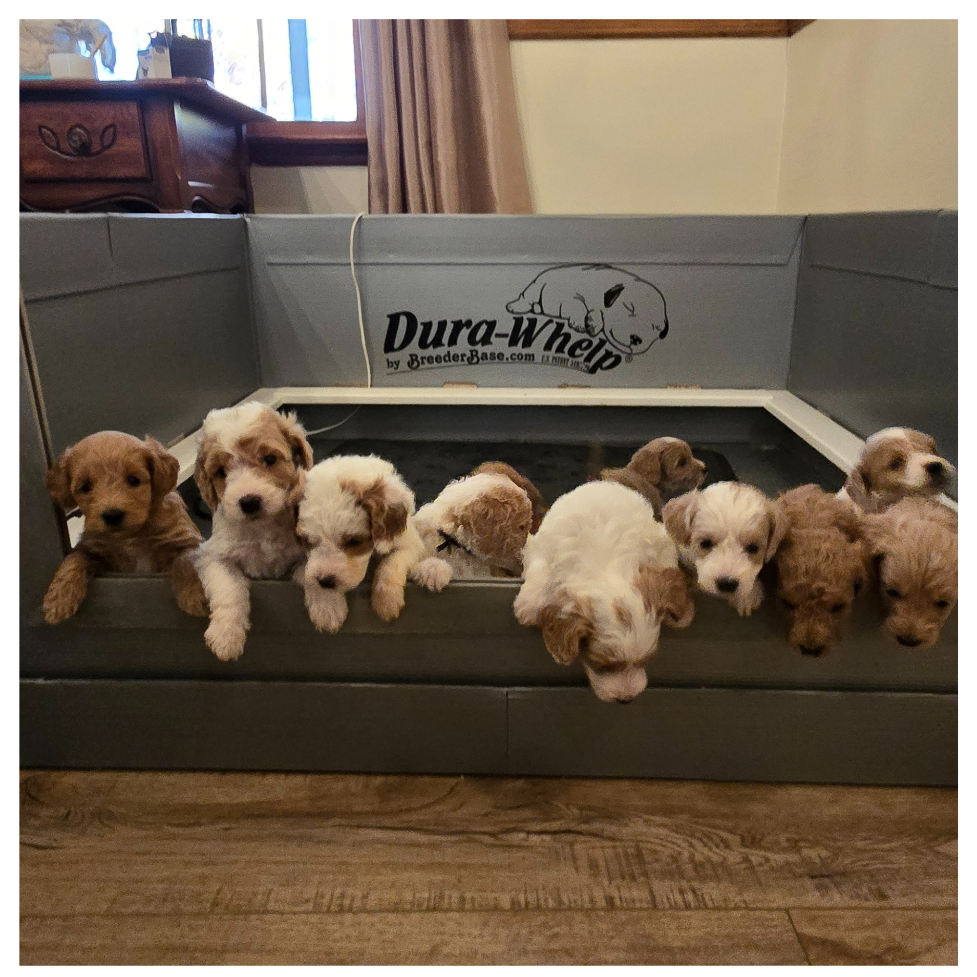This litter benefits from ENS (Early Neurological Stimulation) and ESI (Early Scent Introduction), helping each puppy develop strong, resilient temperaments. They’re exposed to adults, children, household sounds, and daily routines, along with crate training introductions, confidence-building obstacles, and car rides to ensure they’re ready for family life.