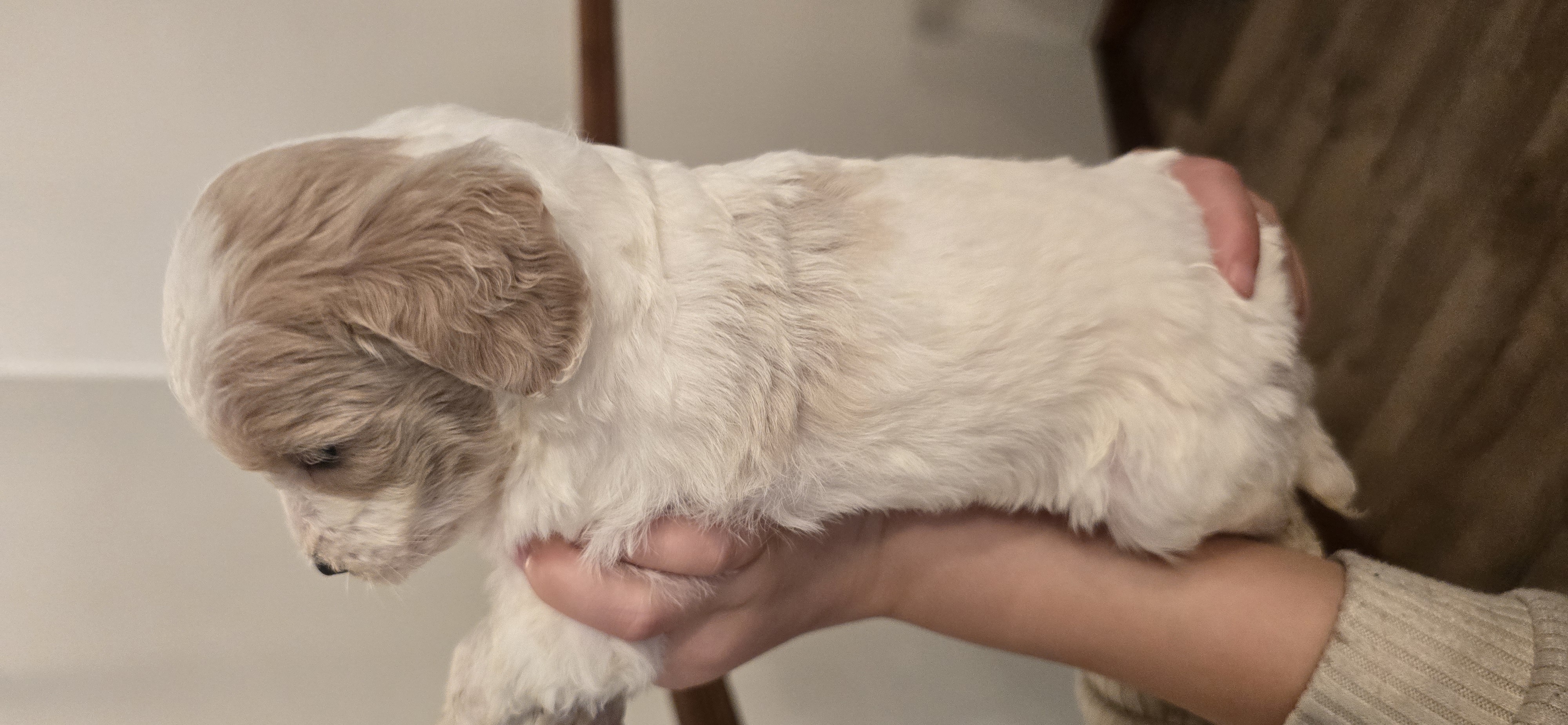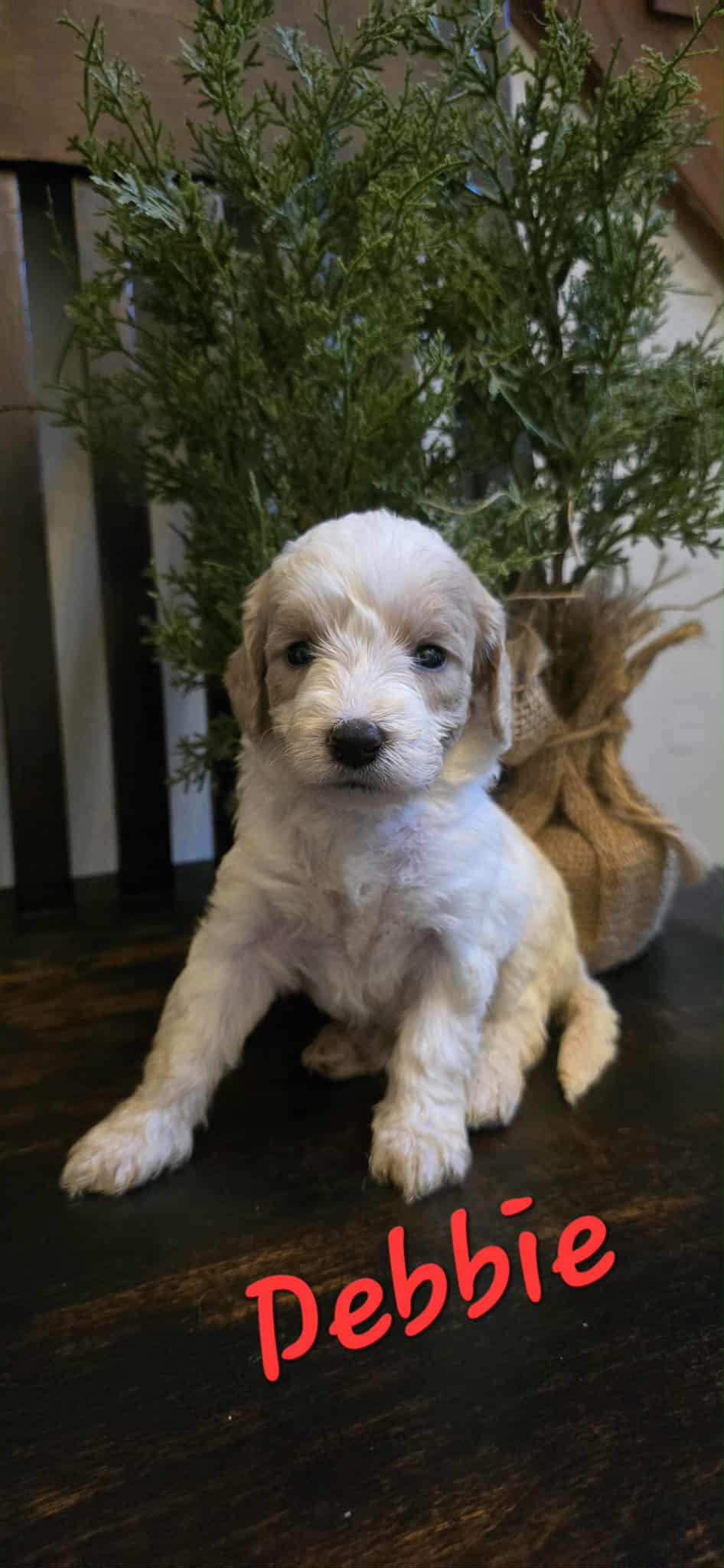 Meet Debbie an apricot and white parti girl with a sweet and gentle temperament complete with an affectionate heart. She’s playful and curious but has a calm, loving side that makes her a joy to snuggle with. Raised in a busy home with five children, Debbie is used to being handled often and included in everyday family life, giving her a confident yet easygoing temperament.