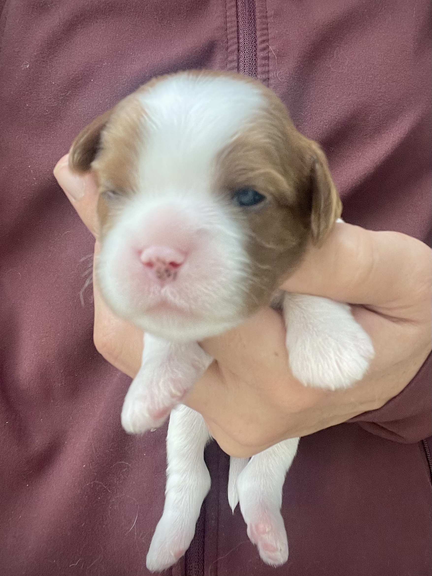 Meet Max, a handsome Blenheim Cavalier King Charles Spaniel boy with soft markings and a heart to match. Even at this young age, Max gives off a gentle and peaceful energy, the kind of puppy who settles easily and loves warmth and closeness. He’s steady and observant, content to rest beside his littermates and soak up affection. As he grows, Max is expected to be affectionate, loyal, and deeply people-oriented, bringing calm companionship and quiet joy to his forever family.