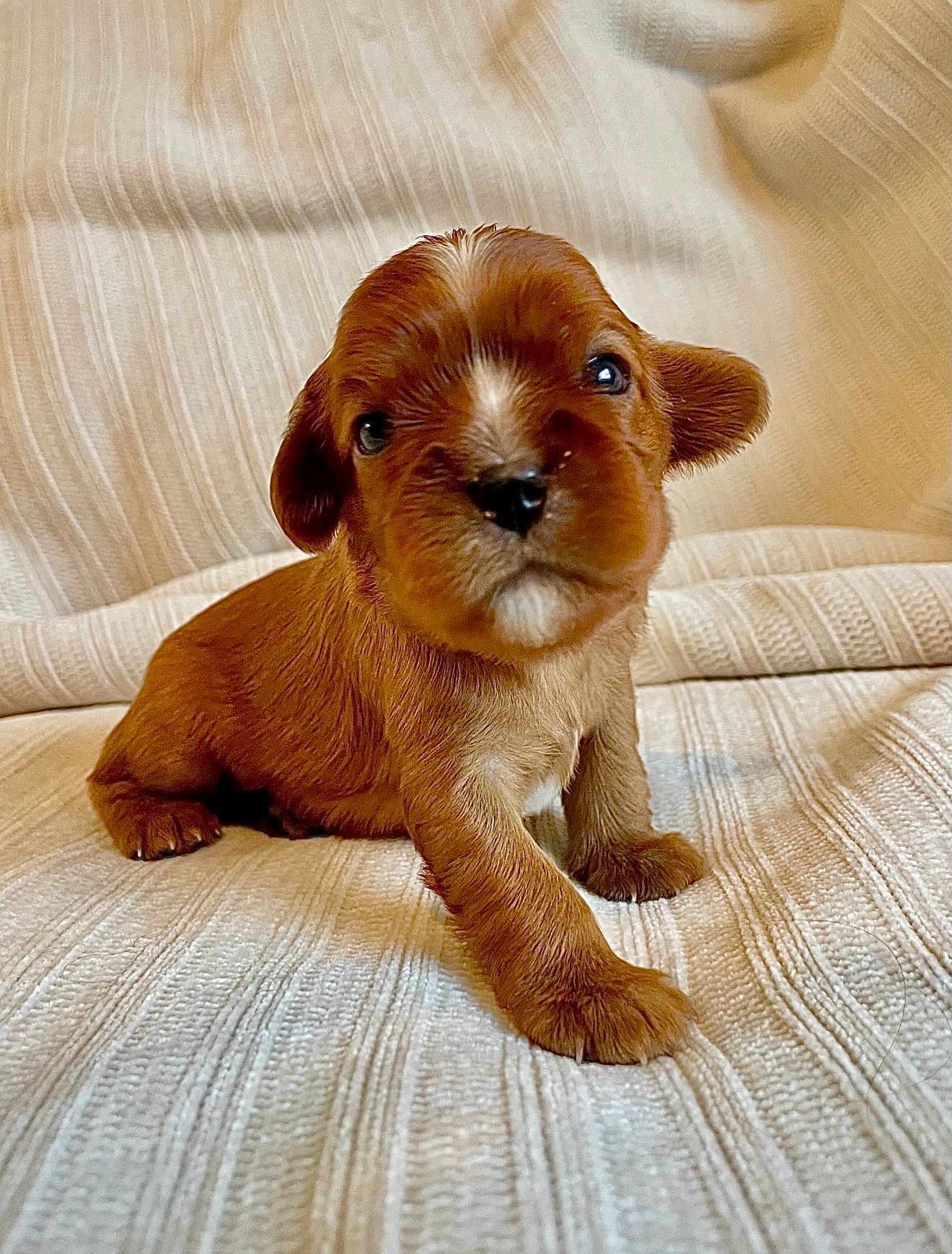 Meet Cindy Lou, a radiant ruby Cavalier King Charles Spaniel girl whose sweetness shines through even at this tender age. With her warm coloring and peaceful spirit, Cindy Lou has a gentle, nurturing energy that makes her instantly endearing. She’s calm, content, and happiest when cozy and secure - a little old soul already showing glimpses of the loving companion she’ll become. As she grows, Cindy Lou is expected to be affectionate, loyal, and deeply attached to her family, the kind of dog who brings quiet joy to every day.