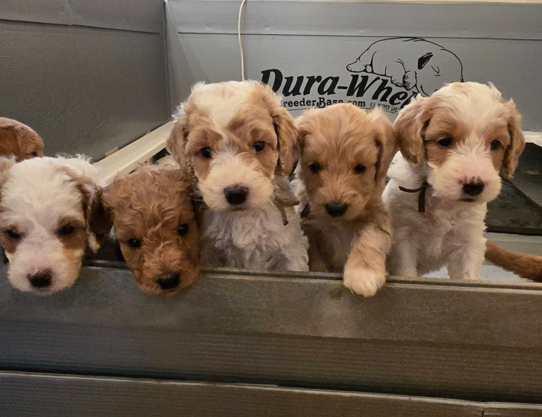 My husband and I have five kids and three adult doodles. I’m a stay-at-home mom, which means our Mini Goldendoodle puppies are with me all day long, getting constant care, supervision, and plenty of love.