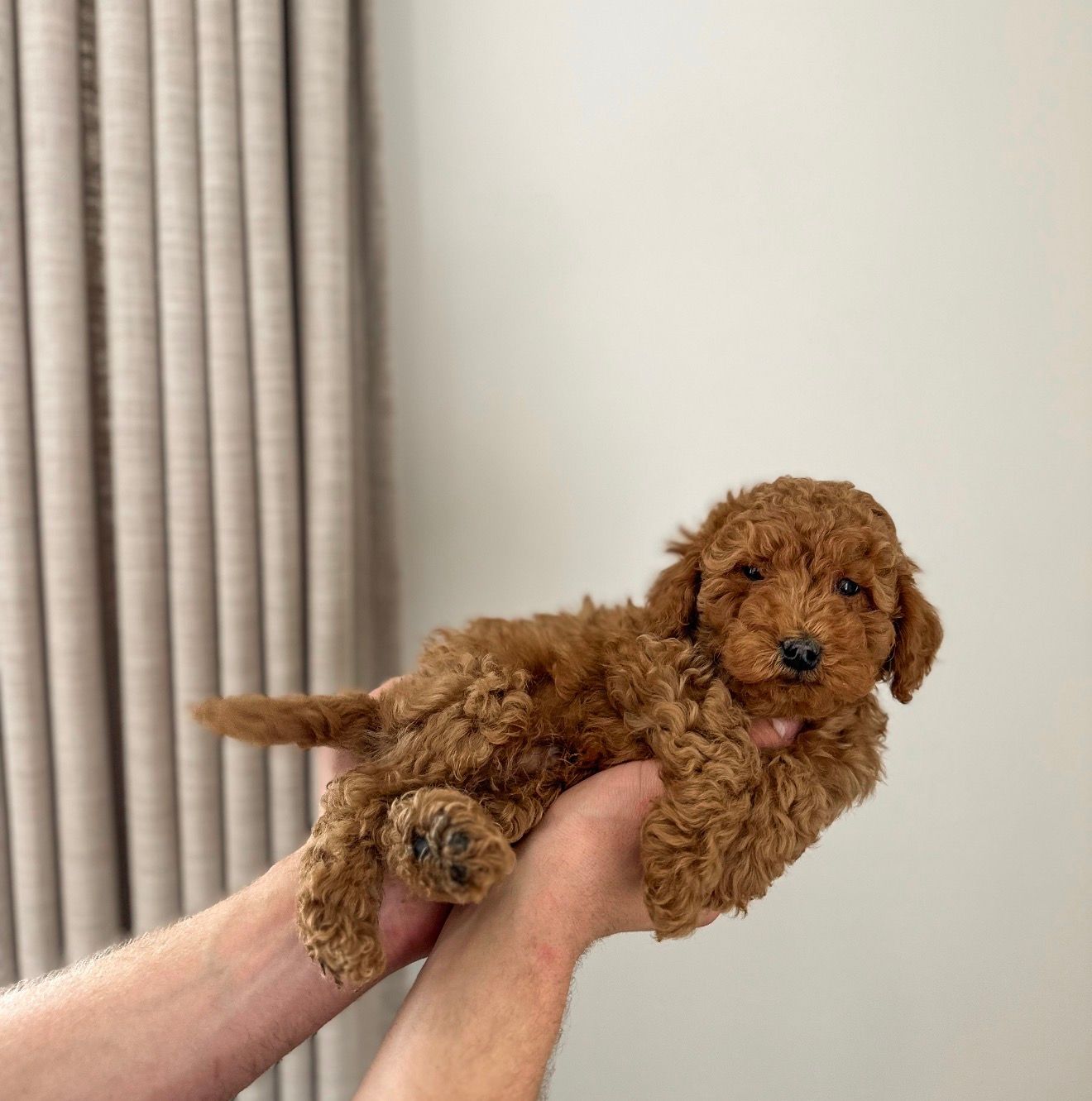 Kai is such a little sweetie — gentle, calm, and naturally more reserved. He loves quiet affection, soft snuggles, and staying close to the people he trusts. His beautiful dark red coat gives him a rich, warm teddy-bear look, and he does not have any white markings.