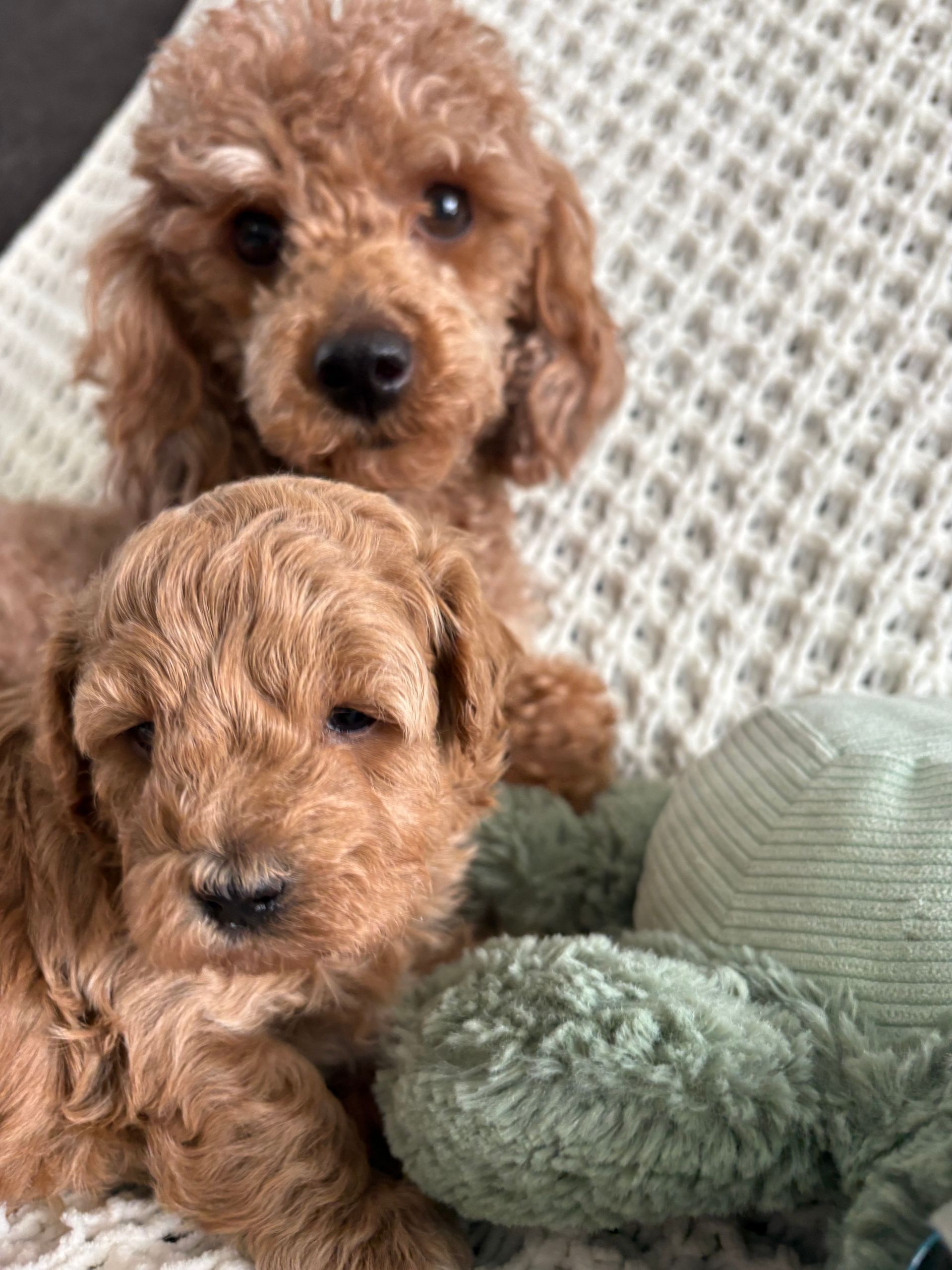 Tansy passes along her sweet, affectionate nature and playful spirit to her puppies, along with her beautiful doodle charm.