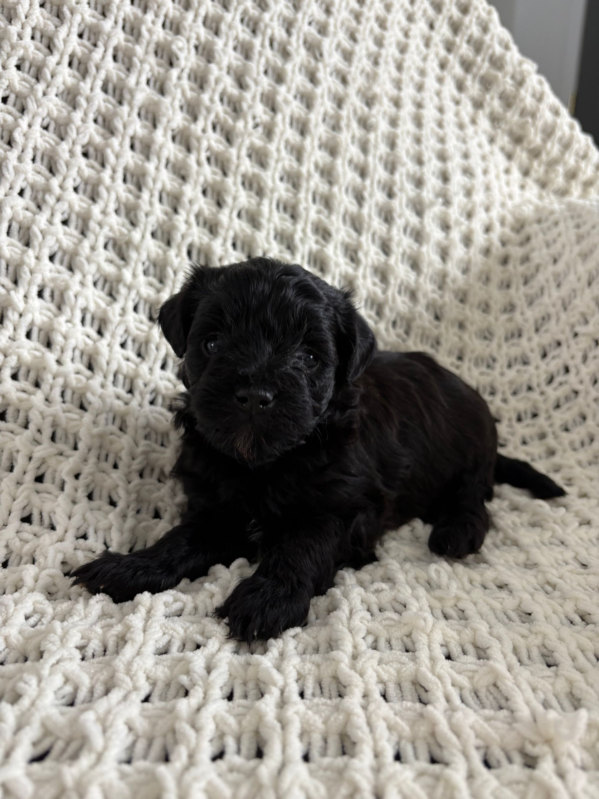 As one of two girls in this litter, Lily has grown up in a loving home environment surrounded by daily family life. Raised alongside two young boys, she is comfortable with children, household activity, and regular handling. She enjoys playful moments with her littermates but especially shines during quiet cuddle time.